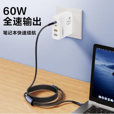 品胜双Type-C数据线二合一PD60W充电线一拖二车载适用苹果iPhone16pro/15/14手机华为70小米笔记本ipad